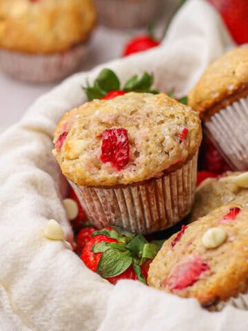 - White chocolate and strawberry muffins (Strawberries and freeze-dried strawberry powder make the fruity flavor here 💯)
