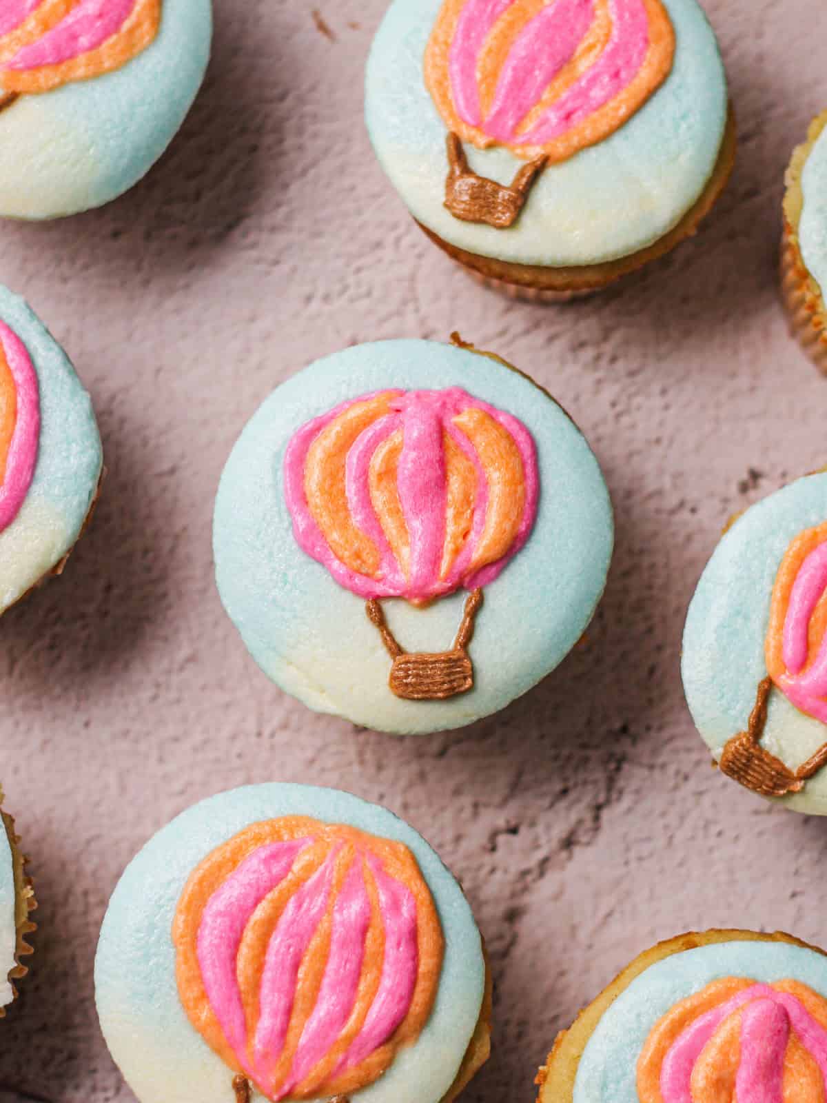 - Once your cupcakes are baked and fully cooled, follow the decorating steps to bring the hot air balloon design to life.